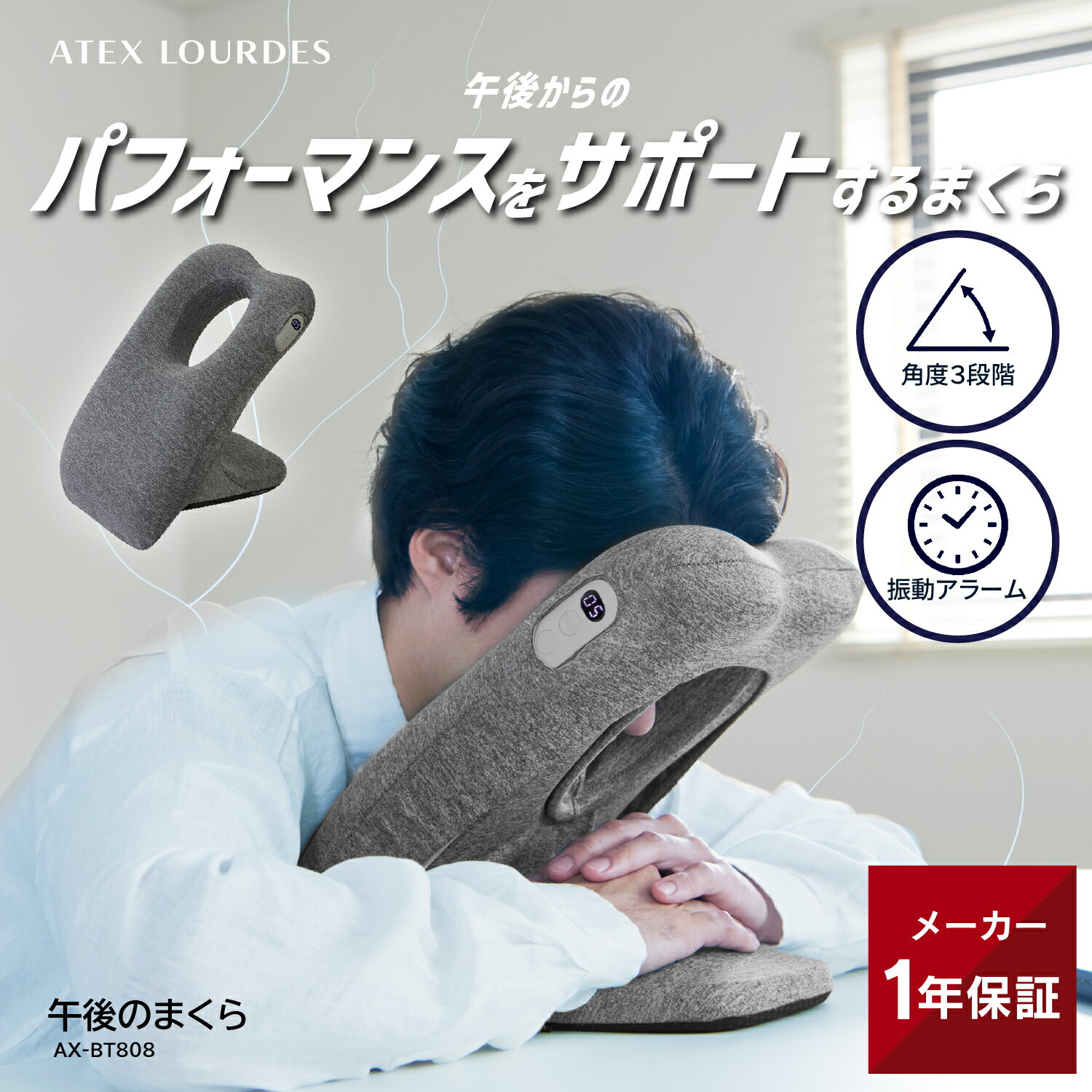 【ポイント10倍】午後のまくら AX-BT808 アラーム タイマー 付き 昼寝 まくら 仮眠 角度調整 寝姿勢 振動 洗える 折り畳み コンパクト 睡眠 おやすみ リラックス リフレッシュ 寝やすい 枕 ピロー 寝具 オフィス 快眠 ATEX ギフト プレゼント 送料無料