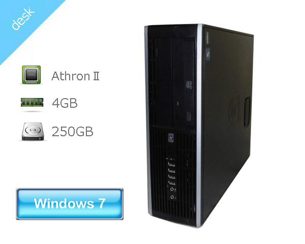 Windows7 Pro 32bit HP compaq 6005 Pro SFF (A2Q04PA#ABJ) AthlonIIx2 B28 3.4GHz 4GB 250GB DVD-ROM 中古パソコン デスクトップ 中古PC