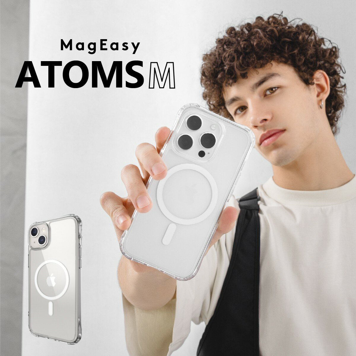 iPhone15Plus ケース Magsafe 対応 マグネット 付 / 耐衝撃 米軍 MIL規格 クリアケース 透明 薄型 クリア マグセーフ 耐衝撃ケース スマホケース [ Apple iPhone15 Plus アイフォン15 プラス 対応 ] MagEasy Atoms M