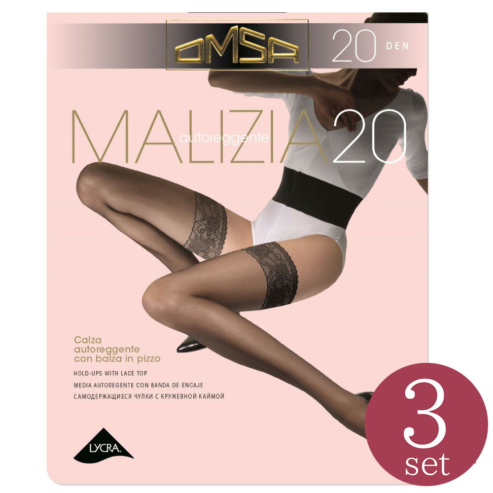 [3足セット]OMSA /オムサ【MALIZIA 20】AUTOREGGENTIイタリアインポートガーターストッキング20デニールつま先スルータイプ2WAYストレッチマイクロファイバーレースバンドシリコンストッパー