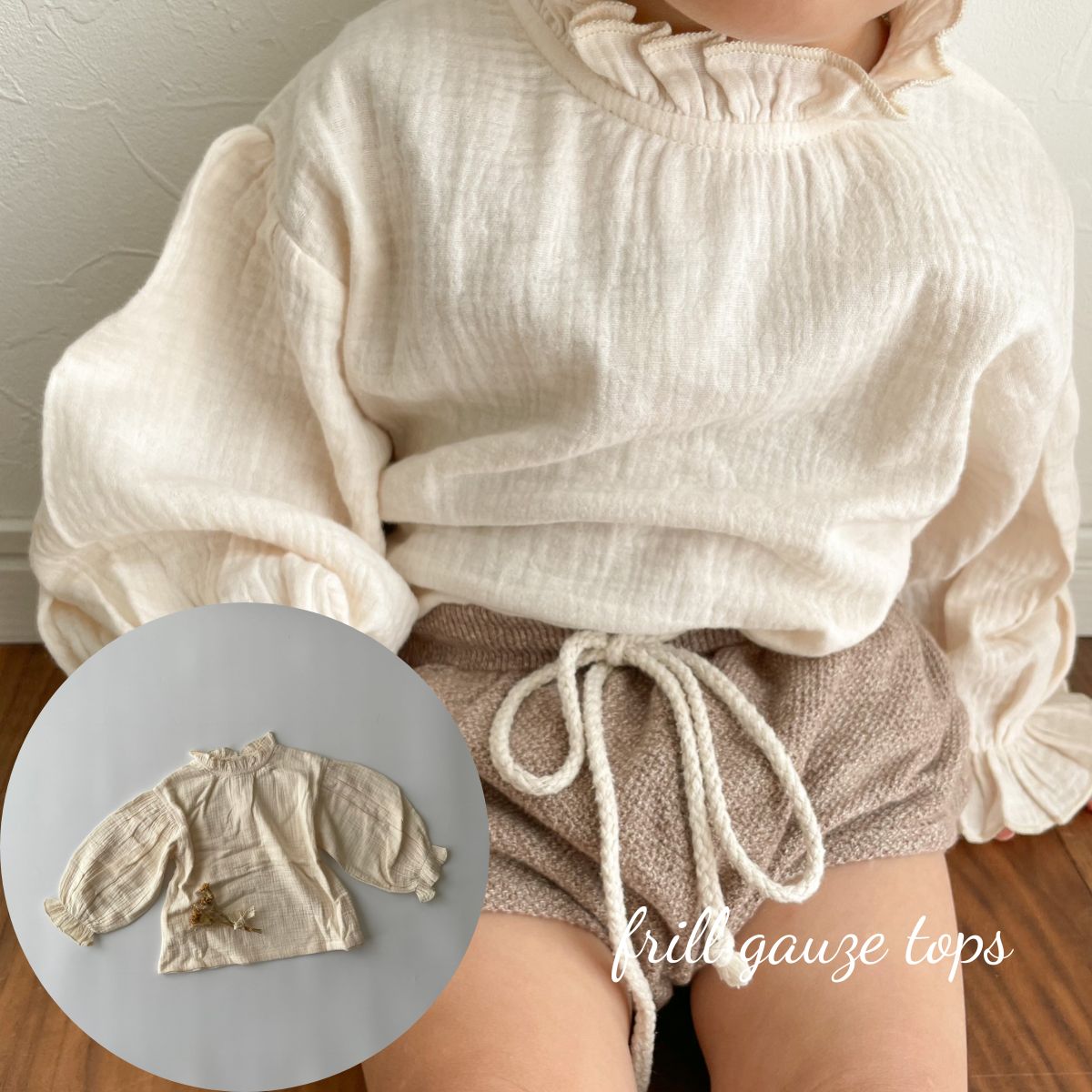 キッズ 女の子 トップス ブラウス frill gauze tops スタンドカラー フリル ガーゼ コットン 長袖 可愛い 80cm 90cm 100cm 110cm 120cm 130cm 140cm インポート 海外 輸入 子供服 春 秋 冬 送料無料