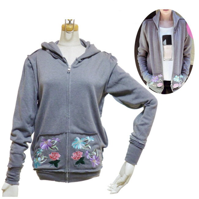 LAセレブ愛用ブランドSauceソースFloral pinkie hoodiお花の刺繍がキュート♪なフーディー グレー インポート レディース 春秋冬 フェミニン ストリート おしゃれ かわいい きれいめ 裏起毛パーカー ガーリー