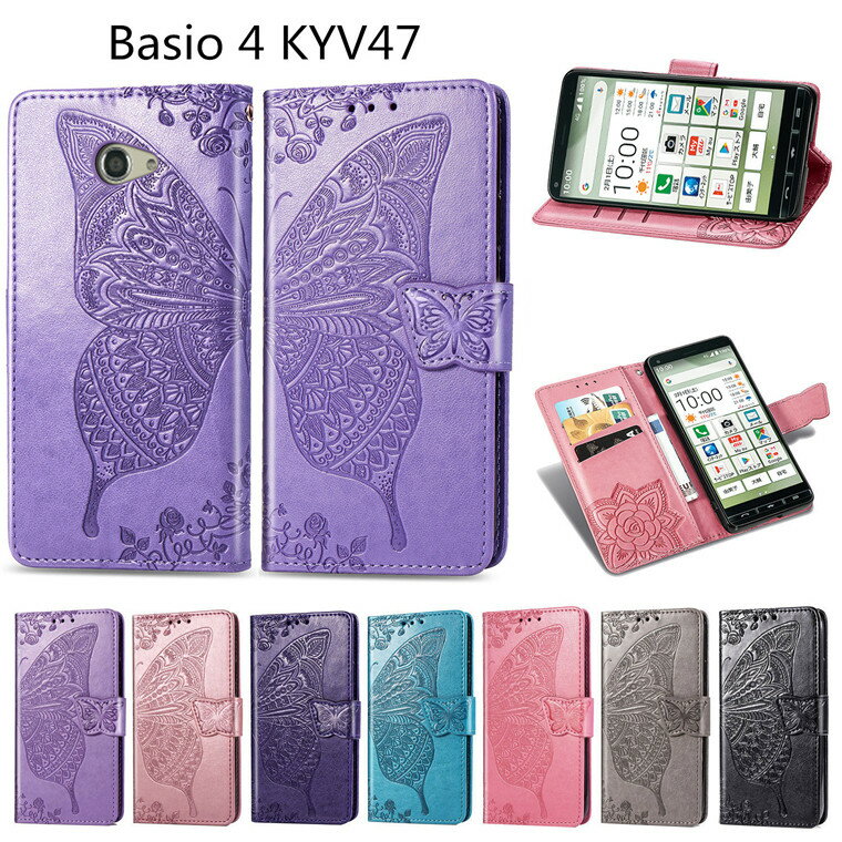 【在庫発送】京セラ BASIO4 KYV47 ケース 手帳型 おしゃれ 蝶柄 au KYV47 カバー 手帳型 レザー 花柄 高品質 カード収納 kyocera BASIO4 カバー 手帳型 革 蝶柄 オシャレ 京セラ ベイシオ4 ケース かわいい 上質 au KYV47 マグネット 留め具 スタンド 通勤 きれい