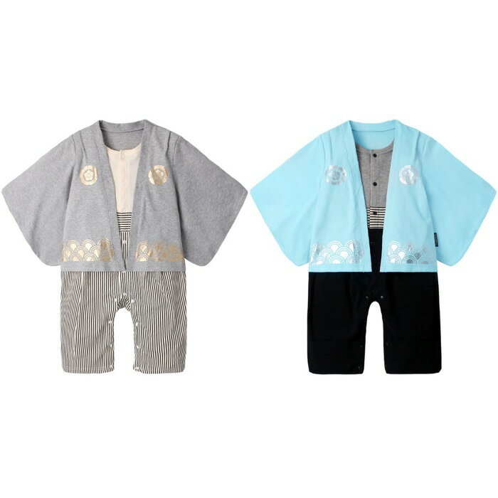 augelute(アウゲリュート)■羽織風 男の子 袴ロンパース 70cm/80cm/90cm■フォーマル ロンパース/袴風オール/着物/袴ロンパース/袴 カバーオール/紋付き/五月人形/かぶと/節句/桃の節句/晴れ着/百日祝い/出産祝い/ギフト/ベビー 袴/お正月/結婚式/衣装/はかま【RCP】