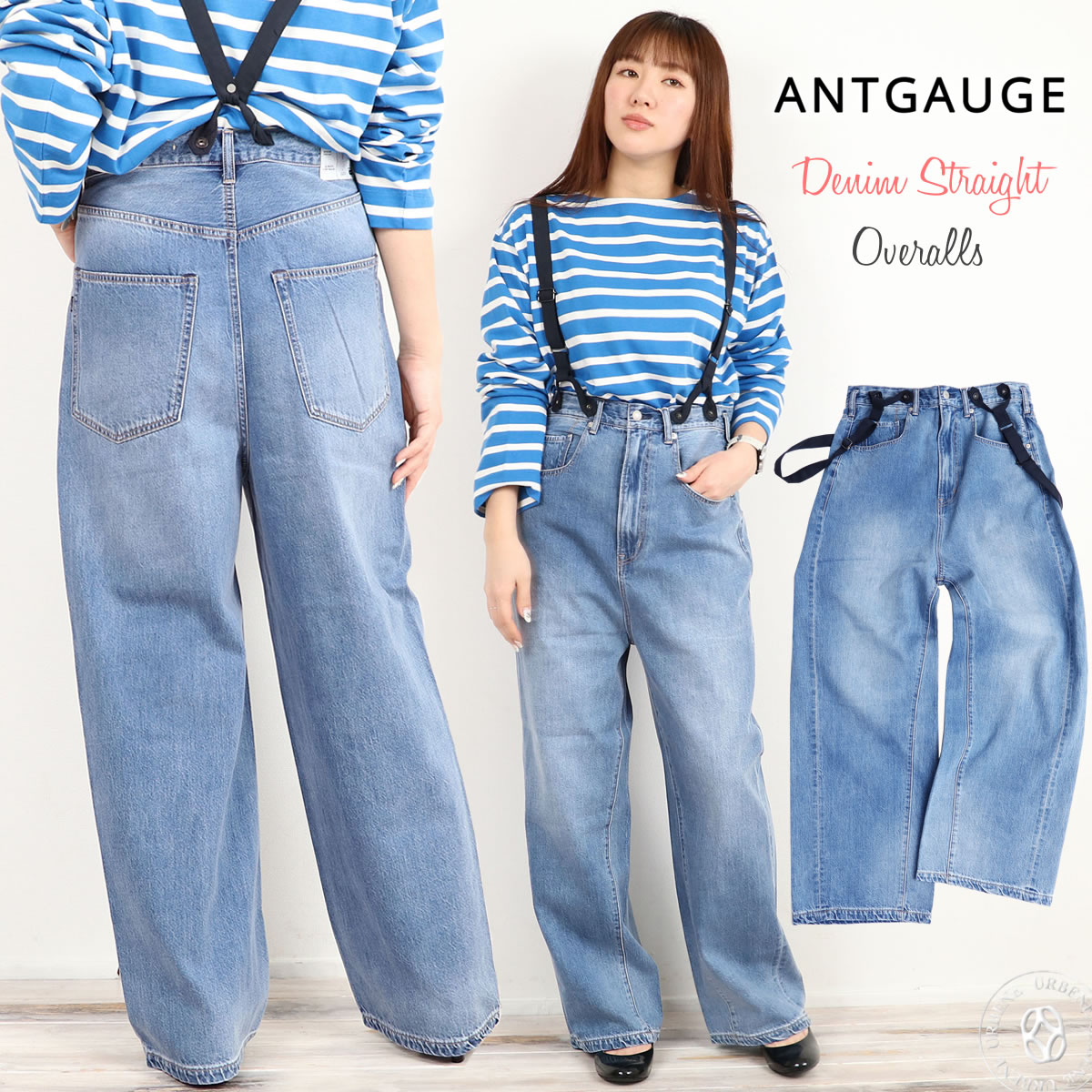 Antgauge アントゲージ 甘織りの8.5oz ノンストレッチ デニム サロペットパンツ ( c2281 ) ボトムス ジーンズ ストレート ワイドパンツ 綿 ドライ 股上深め ロークロッチ 取り外し可能 レディース パンツ オールシーズン 体型カバー おしゃれ アーベン 送料無料 実用的 楽天