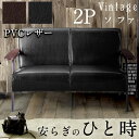 \1日限定! 先着10名様限定15%OFFクーポン配布中!/ ソファ 2Pソファ 2人用 二人用 2人掛け ヴィンテージ風 北欧風 ヴィンテージ加工 レザー 革 黒色 茶色 スチール脚 木製肘 おしゃれ 異素材 背もたれ ヴィンテージソファ オススメ おすすめ 1人暮らし 高級 アンティ