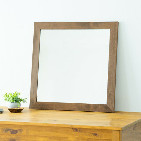 幅広枠正方形ウォールミラー(60)(アンティーク レトロ ブラウン/茶) 天然木 姿見鏡 ワイド 高級感 木製 飛散防止加工 壁掛け 北欧風 ヴィンテージ 韓国インテリア 玄関 トイレ 洗面 日本製 国産 完成品 NK-32 茶 広い木枠のウォールミラー 正方形スクエアミラーでアンティ