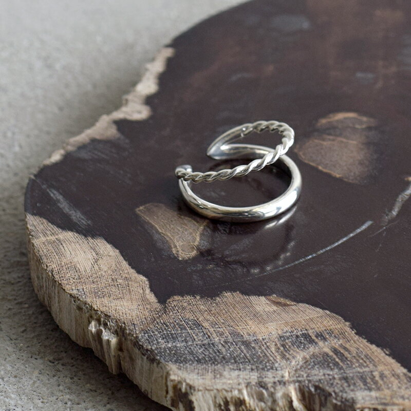 メーカー希望小売価格はメーカー商品タグに基づいて掲載しています 商品カテゴリー【シルバー】aura(オーラ)シルバー925ツイストパックンリング“twistpakkunring”a-r075 aura(オーラ) 雰囲気やオーラのある女性に…Standard [定番] , Personality [個性]シルバーアクセサリーを中心に展開しています。 aura 一覧はこちら 身につけることで雰囲気やオーラを纏える 1本で重ね付けして見える ツイストデザインのリング aura(オーラ)より、シルバー925 ツイスト パックン リング “twist pakkun ring”をご紹介します。 ツイストデザインと挟むようなフォルムが特徴の、ユニークで洗練されたリング。シンプルながらも存在感があり、長く愛用できる本格仕様。1本で重ね付けしたようなデザインなので、これひとつで手元にアクセントをプラスします。 ユニークなデザイン ねじれたツイストと、挟むような「パックン」シルエットが印象的。 重ね付けしたような見え方がこれひとつで叶います シンプルなのに存在感◎ ミニマルながらもデザイン性が高く、どんなスタイルにも自然に馴染みながら、さりげなくおしゃれ感を演出します。 ●silver925 素材は、シルバー925(スターリングシルバー)を使用。シルバー925とは、シルバーの種類の1つです。この925という数字は、銀の含有率(純度)で、92.5%のシルバーが含まれている合金であることを表しています。錆びにくく丈夫な素材なので、永く愛用していただけます。※変色した際は、シルバー専用のクリーナーやクロスをご使用くださいませ。 重ね付けもたのしめる シンプルなデザインなので他のリングとの重ね付けもしやすく、 手元を華やかな印象にしてくれます。 大切な人へのギフトへ オリジナルの巾着袋付きでプレゼントにもおすすめです。 ▼同素材を使用したシリーズ商品 1 a-r073はこちら 2 a-r075はこちら 3 a-n034はこちら size: 直径/約2cm 内寸/約6.7cm 幅/約0.3-1.2cm fabric: シルバー925 weight: 約4g