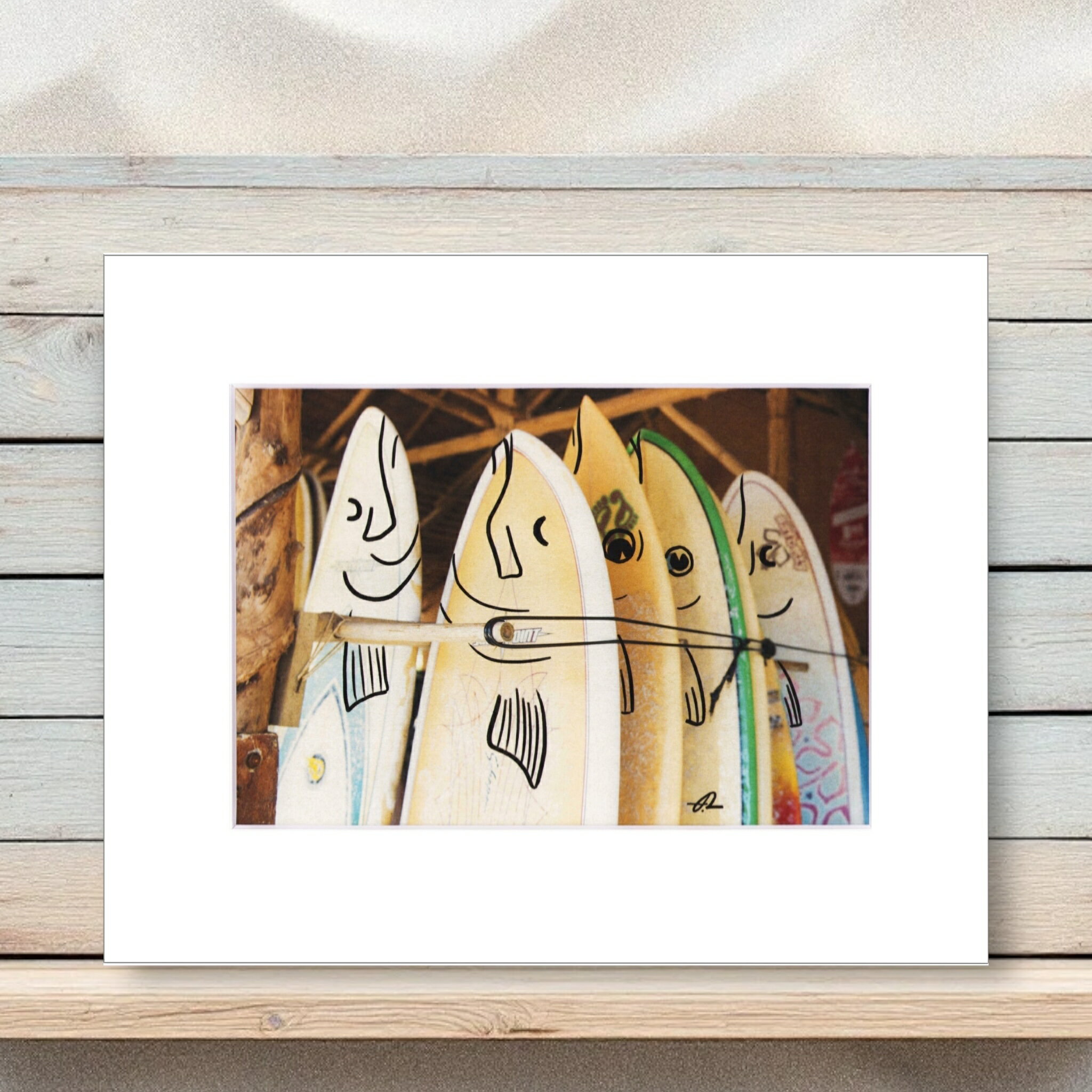 並んでいるだけのサーフボードがファビアンの想像力とセンスでユーモラスでポップな作品に。 想像力とセンスでユーモラスでポップな作品に。。 Sサイズ:25.4cm×20.3cm Mサイズ:35.5cm×27.8cm ※額は別売りです。 ファビアン ラヴァター (Fabian Lavater) ファビアン ラヴァターはスイス出身のアーティスト。 サーフィンを楽しむことが生きがいの彼は、心が温まるような優しいタッチでサーフアートを中心に描いています。 ファビアンは初めてサーフィンを体験した瞬間にサーフィンに魅了されました。 自らの身体に"波のタトゥー"を彫りたいと感じて、そのタトゥーをデザインしたことがアーティストとして活動するきっかけになったそうです。 そんな"波"を愛する彼はイラストレーター兼アーティストとして活動しながらも、海や自然の環境問題にも積極的に取り組んでいます。 そんな活動の影響からか、落ち着きながらも何か訴えかけてくるような表現が見事に独自の世界観を創り上げています。