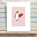 【レビュー特典あり】サーフィン 絵画 マットプリント Surfing Penguin 25.4cm×20.3cm 35.5cm×27.8cm インテリア アートパネル モダン 玄関 アート 絵 モダンアート おしゃれ 寝室 壁掛け かわいい 可愛いペンギン 海 ビーチ 砂浜 南国 マットプリント Fabian Lavater