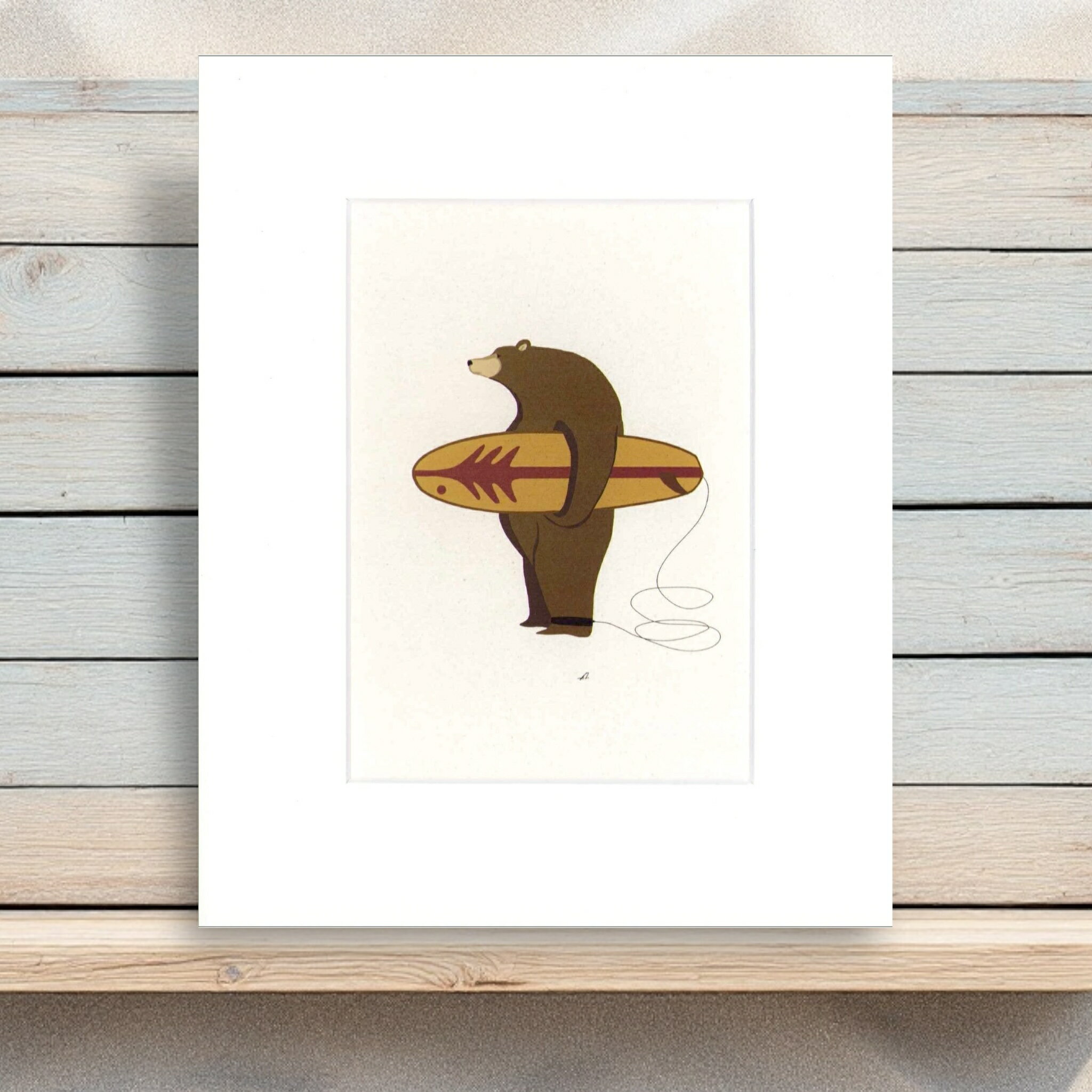 【レビュー特典あり】サーフィン 絵画 マットプリント Surfing Bear Ventana Surfboards 25.4cm×20.3cm 35.5cm×27.8cm インテリア アートパネル モダン 玄関 アート 絵 おしゃれ 寝室 壁掛け かわいい 可愛い ハワイ 海 ビーチ 砂浜 南国 マットプリント Fabian Lavater