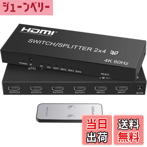 商品情報商品の説明主な仕様 【HDMIスイッチ2入力4出力HDCP 2.2】avedio links HDMI 2入力4出力スイッチャースプリッタは、2つのHDMIデバイスから4つのHDMIディスプレイにビデオとオーディオを同時にストリーミングできます。HDCP2.2プロトコル準拠のHDMI2.0をサポート(注:4つのHDMI出力ポートは同じ画面のみを表示でき、分割表示はサポートされていません。)br【幅広い互換性】弊社の4K@60Hz HDMI 分配器リモコン付きは、コンピュータ、Blu-rayプレーヤー、DVDプレーヤー、AVレシーバー、Rokuストリーミングメディアプレーヤー、TVボックス、Play Station 3/4、PS5、Xbox One/360、またはその他のHDMI対応デバイスと互換性のある2x4 HDMIスイッチボックスをUltra 4Kテレビ(UHDテレビ)、HDTV、モニター、ディスプレイ、またはプロジェクターに大画面でリンクします。br【特徴】HDMI音声分離器は4kと1080pを同時に出力できます。HDR 10:鮮やかな視覚の世界を楽しむのに役立ちます!br【プラグ&プレイ】この4K HDMIスイッチはセットアップと操作が簡単で、ACアダプターで電源を入れてHDMIデバイスを接続するだけで楽しめます。2つの方法で切り替える:座席から立ち上がなくても、内蔵ボタンまたはIRリモコンを使用して手動選択入力ソースをサポートします。br【ビデオ&オーディオ】4K HDMIスイッチセレクターボックスは、最大Ultra HD 4k@60Hz解像度RGB / YUV 4:4:4 .、4k@30hz、フルHD 1080P、720P、3D、HDMI 2.0をサポートし、3.5mmとSPDIFオーディオ出力もサポートしています。