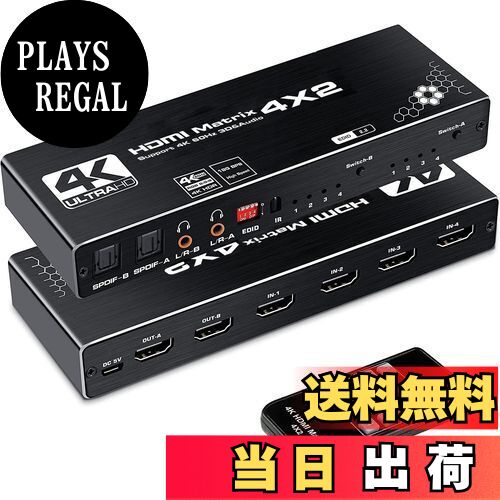 【送料無料】avedio links 4K@60Hz HDMIマトリックス4入力2出力 HDMI切替器 音声分離器 光デジタル/SPDIF/L/Rオーディオ出力 リモコン操作 HDMI 2.0b、HDCP 2.2、HDR 10、RGB 8:8:8対応【Switch/PS5/XboxシリーズX動作確認済み】
