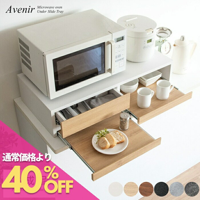 【3/10〜3/11 1:59まで全品5%OFFクーポン配布中】 電子レンジ下トレー スライド スライドトレー レンジ下 スライドテーブル 引き出し 台所 キッチン用品 おしゃれ 北欧 レンジ置き 省スペース 電子レンジ置き レンジ下スライドトレー Avenir〔アベニール〕