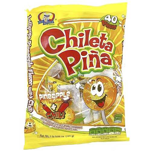 El Azteca Chileta Pina、チリ パイナップル ロリポップ、40 袋 El Azteca Chileta Pina, Chile Pineapple Lollipops, Bag of 40