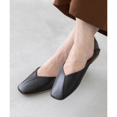メヌエ Menue スクエアトゥ 2wayバブーシュ (ブラック/スムース調)