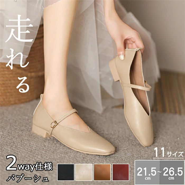 バブーシュ レディース スクエアトゥ ぺたんこ ローヒール スリッポン 軽量 痛くない バブーシュ パンプス レディース ローヒー