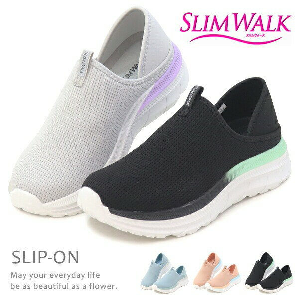 スリムウォーク スニーカー スリッポン レディース ウォーキングシューズ カジュアルシューズ バブーシュ かかとが踏める 靴 厚底 柔らかい 軽量 SLIM WALK SW20075