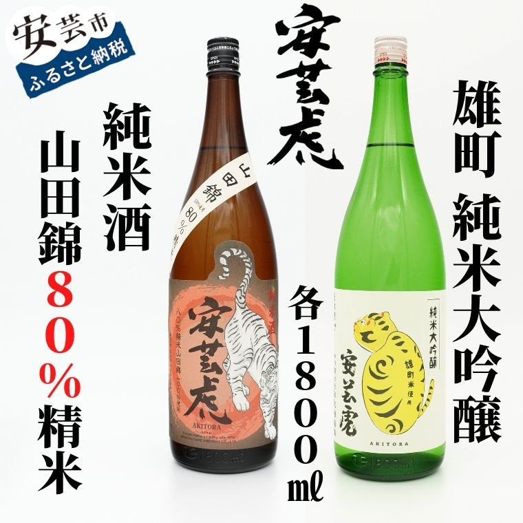 【ふるさと納税】安芸虎純米酒山田錦80%・安芸虎雄町純米大吟醸 セット 1,800ml 高知県安芸市 有光酒造 日本酒 飲み比べセット 純米酒山田錦80%は日本酒の品評会「Kura Master」でプラチナ賞受 雄町純米はバナナやりんごのような香り、甘みと酸味のバランスが良い