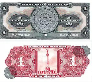 メキシコ、1 ペソ、Banco de Mexico S.A.、20-VIII-58、シリーズなし、S/N なし、P-59