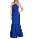 モルガン レディース トップス ワンピース ボディコンワンピース フロントスリット サテン ホルター Morgan & Co. Satin Halter Neck Bar Back Front Slit Bodycon Dress Royal