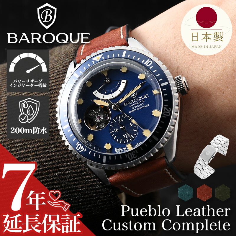 【オイルレザー ベルトセット】バロック 腕時計 BAROQUE 時計 日本製 機械式 自動巻き メカニカル 200m 防水 メンズ 男性向け オープンハート シースルーバック メタルブレス ヴィンテージ ダイバーズ 人気 ブランド おすすめ おしゃれ 記念日 誕生日 プレゼント アウトドア