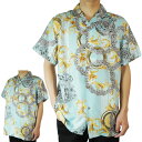 メンズ シャツ【クリックポスト発送】SILVER STONE シルバーストーンBAROQUE OPEN COLLAR SHIRTSバロック オープン カラー シャツL.BLUE(ライトブルー)男性用 半袖 青 水色 柄シャツ ストリート HIPHOP