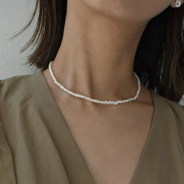 【a n c e】SV925 Minimum Baroque Pearl Necklace