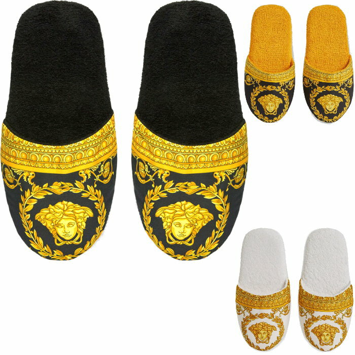 【エントリーPT5倍】VERSACE ヴェルサーチ BAROQUE バロック バス スリッパ ルームシューズ ブラック ホワイト イエロー ZSLB00002-ZCOSP052_Z4800