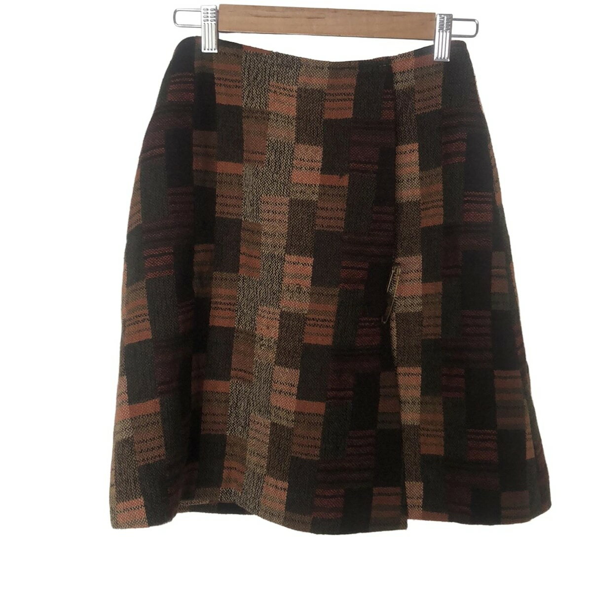 【中古】Christian Lacroix(クリスチャンラクロワ) 巻きスカート ミニ/チェック柄/BAZaR ダークブラウン×オレンジ×マルチ
