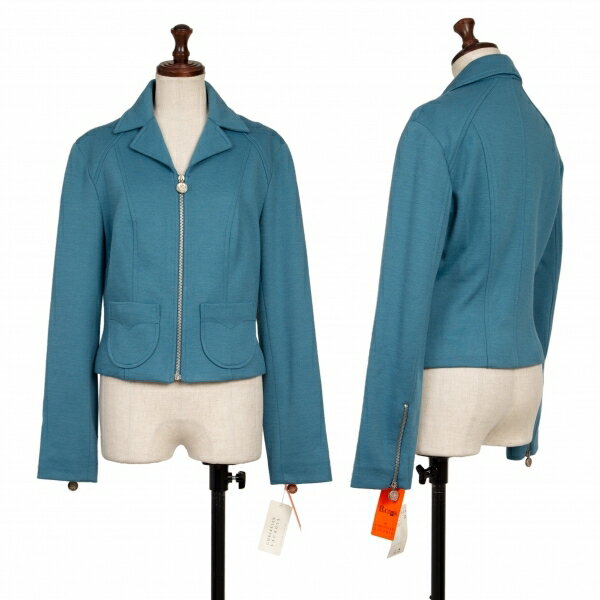 【中古】 クリスチャンラクロワバザールCHRISTIAN LACROIX BAZAR ウールアクリルジップジャケット ターコイズブルー38【レディース】