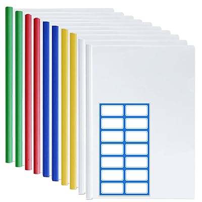DY.2ten スライドファイル 大容量 A4 10冊セット カラー レールファイル 厚とじ 1.5cm幅 クリアーファイル レールクリアホルダー 約130枚のA4コーピー用紙収納可 資料収納 書類保護 ビジネス フォルダー 会議 オフィス セミナー プレゼン用 白 赤 青 緑 黄 ラベル付き
