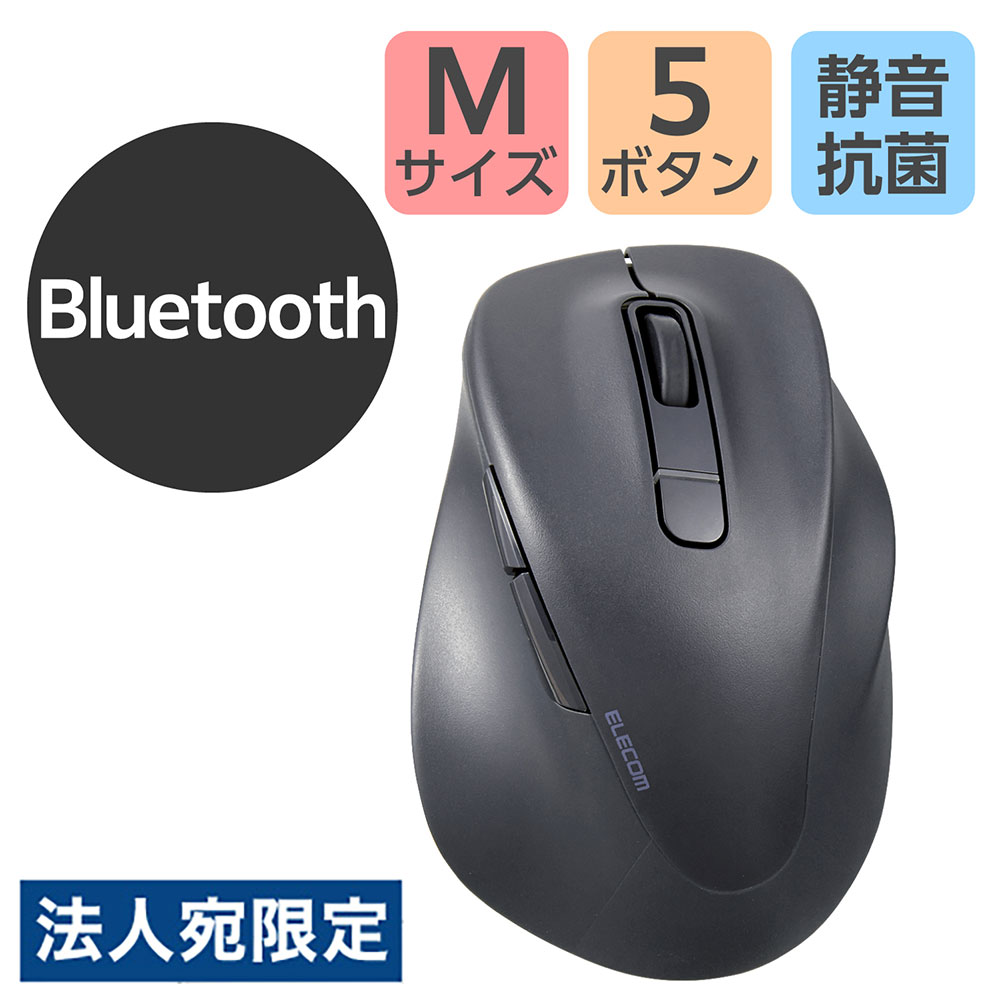 【必ずお読みください】お届け先の氏名に必ず法人名・屋号を記載ください。なお個人のお客様でもお届け先の氏名が法人名であればご注文いただけます。誤ってお届け先の氏名を個人名でご注文いただいた場合は、キャンセルさせていただきますのでご了承ください。■医師との共同開発により究極の握り心地を実現した5ボタンマウスEX-G。■習志野台整形外科内科 宮川一郎院長ご協力のもと、手首を動かす「腕橈骨筋」と指を動かす「総指伸筋」に着目し、マウスを動かす手の筋に最適な角度と形状を追究しました。■手を自然に乗せるだけで使えるから、余計な力がかからず、手首と指の両方の負担を極限まで抑えた使い心地を実現しています。■まるで握ってないような心地よさを実現させるために、角が取れた、繋ぎ目を感じさせない造形を採用しています。加えて、各ボタンへアクセスしやすいシームレスな操作感など、更に進化した握り心地を目指しました。■EX-Gシリーズは、エムスリー株式会社が実施する、多数の医師が製品に対して客観的評価を行う「AskDoctors評価サービス」の認定商品です。医師100名の99%が「本製品を勧めたい」と評価しました。※2023年4月 AskDoctors調べ■左右ボタンには、パナソニック株式会社が開発した静音スイッチを採用。クリック感と耐久性を損なわず、高い静音性を実現しました。■気になるクリックのカチカチ音が響かないため、会議中のパソコン操作や在宅勤務時の早朝・夜間の作業などでも気にせず使用できます。■抗菌加工により、マウスの表面に付着した菌の繁殖を抑えて清潔に保ちます。(抗菌範囲/マウス筐体、ホイール部分)■こちらの製品は表面上における細菌の増殖を抑制、あるいは阻害する性能を有したもので、JIS(日本産業規格)が定める抗菌性試験に準拠したものです。■ワイヤレスでデスク周りをすっきりと使えるBluetooth(R)接続タイプです。■Bluetooth(R)HOGPに対応したパソコンであれば、レシーバーを接続することなくマウスを使用できるため、USBポートの少ないパソコンやタブレットにぴったりです。※Bluetooth(R)HOGPに対応していないパソコンでも、規格に適合したBluetooth(R)アダプターを用意することで使用可能です。(推奨Bluetoothアダプター/LBT-UAN05C2 シリーズ(別売))■Webサイトやフォルダの操作時に便利な「進む」「戻る」ボタンが付いた5ボタンタイプです。■中指の先端から手のひらの下までの長さが165〜180mmの方にピッタリとフィットするMサイズです。※上記は参考値です。■小さい凹凸やホコリがある環境でも正確にポインターを動かせるBlueLEDセンサーを搭載することで、木材・樹脂・ガラス製のデスクや、ノート、テーブルクロスの上などでも快適に操作できます。■無料でダウンロードできるボタン機能割り当てソフトウェアエレコムマウスアシスタントを利用すると、ボタンをお好みの機能にカスタマイズできます。■最大2台のBluetoothマウス対応機器に接続可能な接続先切り替え機能を搭載しています。■本体上部のボタンで簡単に接続先を切り替えられるため、家ではパソコン、外ではタブレットなど、複数のデバイスを併用している方におすすめです。■環境認定基準を1つ以上満たし、「THINK ECOLOGY」マークを表示した製品です。■廃棄物削減に取り組み、製品に同梱する取扱説明書等をペーパーレス化した製品です。◆対応機種/Bluetooth(R)HOGPに対応したWindows OS、Android、macOS、iOS、iPadOS、ChromeOS 搭載機◆対応OS(Windows)/Windows 11/10◆対応OS(Android)/Android 12◆対応OS(macOS)/macOS Sonoma 14/macOS Ventura 13◆対応OS(iOS)/iOS 16◆対応OS(iPadOS)/iPadOS 16◆対応OS(その他)/ChromeOS■商品詳細メーカー名:エレコム接続方式:Bluetooth(R)無線Bluetooth規格:Bluetooth 5.0 Class2通信方式:GFSK方式電波周波数:2.4GHz帯電波到達距離:最長約10m ※ご使用環境により異なる場合があります。接続先切り替え機能:対応(Bluetooth(R)/2台)読み取り方式:BlueLEDセンサー分解能:2000DPIボタン数:5個 ※ホイールボタン含むホイール数:1個電源:単3電池1本電池寿命:最長約16カ月(アルカリ乾電池使用時の目安) 外形寸法:幅約75mm×奥行約114mm×高さ約55mm重量:約91g ※電池含まず内容物:マウス本体1個、テスト用単3電池1本カラー:ブラック保証期間:2年間購入単位:1個配送種別:直送品 代引不可 返品不可 配送日時指定不可※商品はメーカーより直送させて頂くため、代金引換でのご注文はお受け致しかねます。※こちらの商品は他の商品とは別のお届けとなります。※メーカー直送のため、納品・請求書は商品とは別に郵送させていただきます。※商品はメーカーより直送させて頂くため、ご希望配送日時の指定はできません。※メーカーにて欠品発生時はこちらからご連絡させて頂くこともございます。※お客様都合による返品・交換はお受けしておりません。※沖縄・離島は送料別途見積りとなります。※リニューアルに伴いパッケージや商品名等が予告なく変更される場合がございますが、予めご了承ください。※モニターの発色