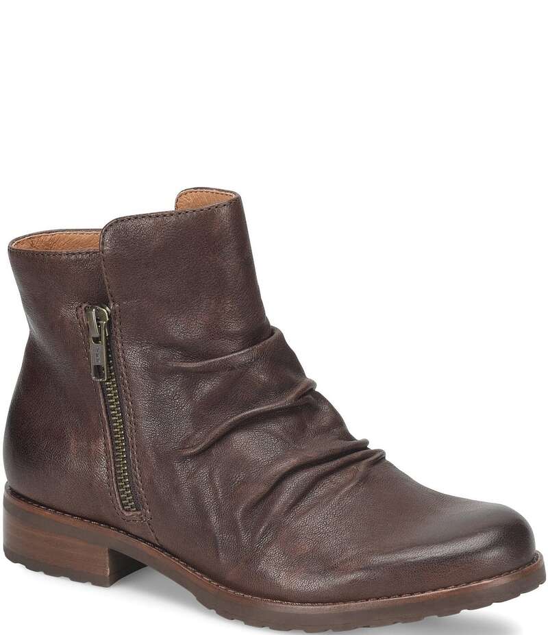 ソフト レディース シューズ ブーツ・レインブーツ ギャザー ブーツ レザー Sofft Beckie II Ruched Leather Zip Booties Cocoa Brown ブラウン