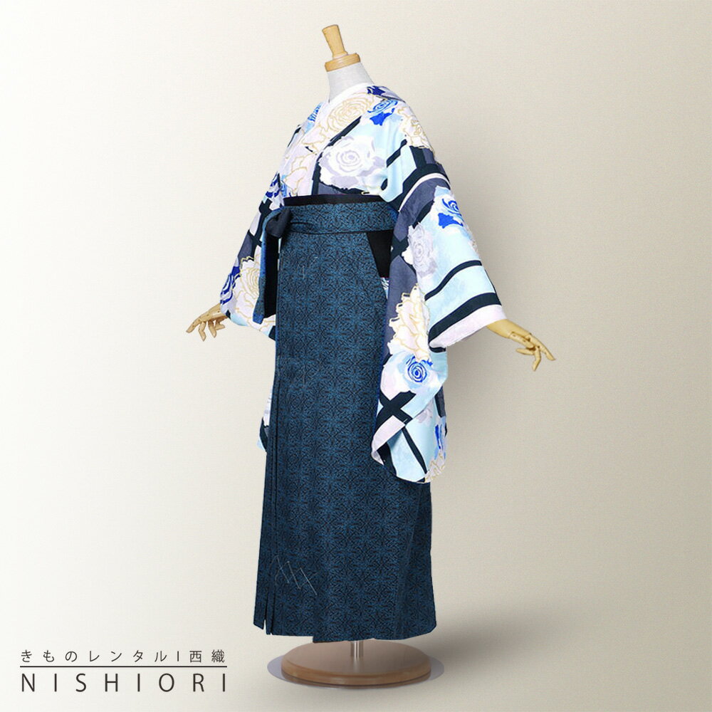 【BLACK FRIDAY お得なクーポン配布中!】【レンタル】二尺袖 着物 袴 フルセット 【貸衣装 卒業式 大学生】 【CECIL McBEE セシルマクビー】 【青 白 紺 バラ ストライプ 刺繍】【袴Mサイズ】【ジュニア袴(小学生)対応可】