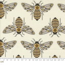 【Moda モダ】Bee Garden-48411-11M(3A-02) アイボリー ゴールド 蜂柄 昆虫柄 おしゃれ 大柄 大きめ柄 メタリック加工 コットン100% シーチング 110cm幅【10cm単位販売】
