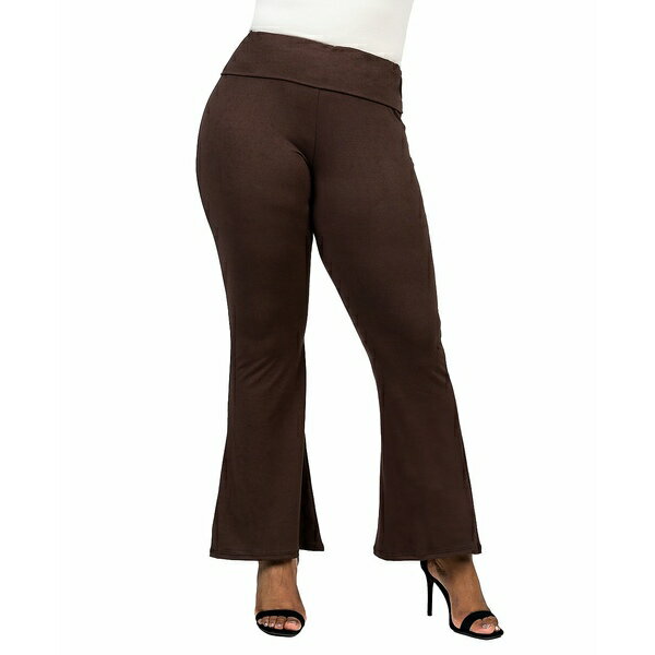 24 セブンコンフォート レディース ボトムス カジュアルパンツ プラスサイズ パンツ スウェットパンツ 24seven Comfort Apparel Plus Size Black Bell Bottom Foldover Waist Sweatpants Brown ブラウン