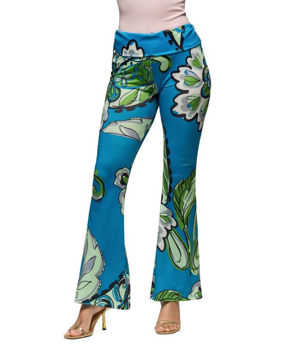 24 セブンコンフォート レディース ボトムス カジュアルパンツ プリント パンツ 24seven Comfort Apparel Women's Teal Paisley Print Bell Bottom Foldover Waist Pants Blue Multi ブルー