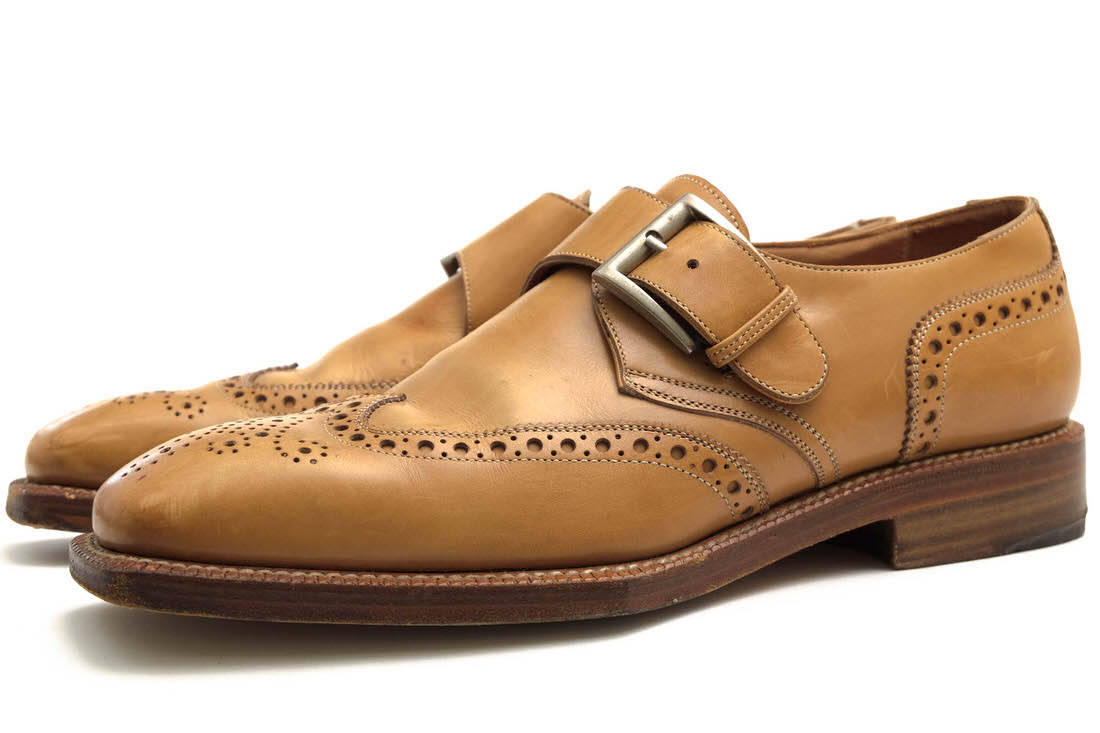 BRANDINGの全商品で利用可↓↓1%OFFクーポン↓↓FRANCESCO BENIGNO / フランチェスコべニーニョFRANCESCO BENIGNO フランチェスコべニーニョ ビジネスシューズ 牛革 カーフ商品説明フランチェスコ・ベニーニョは1927年イタリア・ナポリでに始まり、現在ではマッケイ製法ではイタリアを代表する工房です。無彩色のクラフトレザーで靴を制作し、1足1足繊細な手作業で幾重にも塗り重ね染め上げていくカラーリングは奥行と味わいのある美しい仕上がりで人々を魅了し、その造形美は工芸品のただずまいを感じさせてくれます。世界トップレベルのブランドやショップから認めれられたその品質と美が、各方面からの驚きとともに高く評価されています。絶妙なアンティーク仕上げの奥深い色合い、シャープなフォルム、艶感のあるスタイル、立体感と光沢感、美しいプロポーション、足元を華やかに演出してくれます。同じくイタリアの有名な革靴ブランドであるステファノ・ブランキーニのOEMを手がけていたことがあるのでも有名。商品詳細◆ブランド名 FRANCESCO BENIGNO◆サイズ表記 UK8◆日本サイズ参考 約26.5-27.0cm◆サイズ詳細 アウトソール靴底全長 約29.5cm、アウトソール靴底幅 約11cm、ヒール高さ 約3cm◆特徴 ウイングチップ モンクストラップ レザーソール◆生産国 イタリア◆素材 上質な革 レザー◆素材詳細 カーフ(牛革)◆色 ベージュ◆商品状態 中古品-良い◆状態詳細 ヒール修理済み