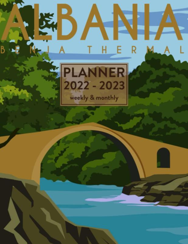 Planner 2022-2023 Weekly And Monthly: Albania Benja Thermal Vintage Illustration | October 2022 To December 2023 Academic Year