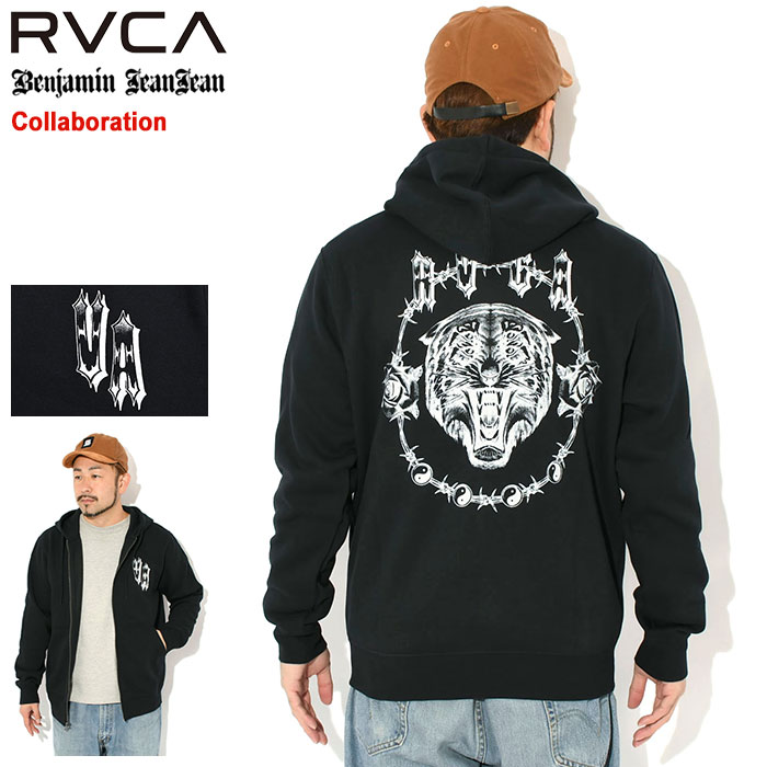 ルーカ RVCA パーカー ジップアップ メンズ ベンジャミン ジーンジーン Benj タイガー アイズ フル ジップ フーディ コラボ ( RVCA×BENJAMIN JEANJEAN Benj Tiger Eyes Full Zip Hoodie 保温 暖かい あったか 裏起毛 フード スウェット ジップパーカー トップス BF042049 )