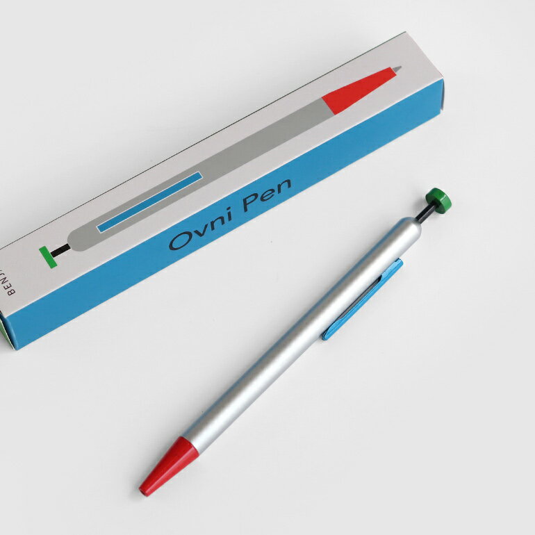 バルセロナ発のデザインステーショナリーブランド「BENJA(ベンジャ)」。 バウハウスの芸術文化に共感し、その理念に基づいたデザインを商品作りに活かしています。 こちらはシルバーのボディにレッドやブルーが映え、ユニークな造形も目を惹くボールペン。 「OVNI」とは未確認飛行物体のこと。 近未来的なカラーリングが特徴的で、ノック部はUFOをイメージして作られています。 バウハウスの理念に基づいたデザインは、幾何学的でシンプルな形状。 遊び心の中にも無駄が一切ない、機能的な美しさを感じます。 ユニークなデザインのボールペンはBOX入りでギフトにもおすすめですよ。 ブランド名 BENJA[ベンジャ] 商品名 オヴニーペン シルバー サイズ 本体 φ8 × H13(mm) パッケージ H170×D23×W23(mm) 関連商品 専用替え芯はこちら 注意事項 パッケージならび本体に若干の傷や汚れなどがある場合がございます。 備考 02818
