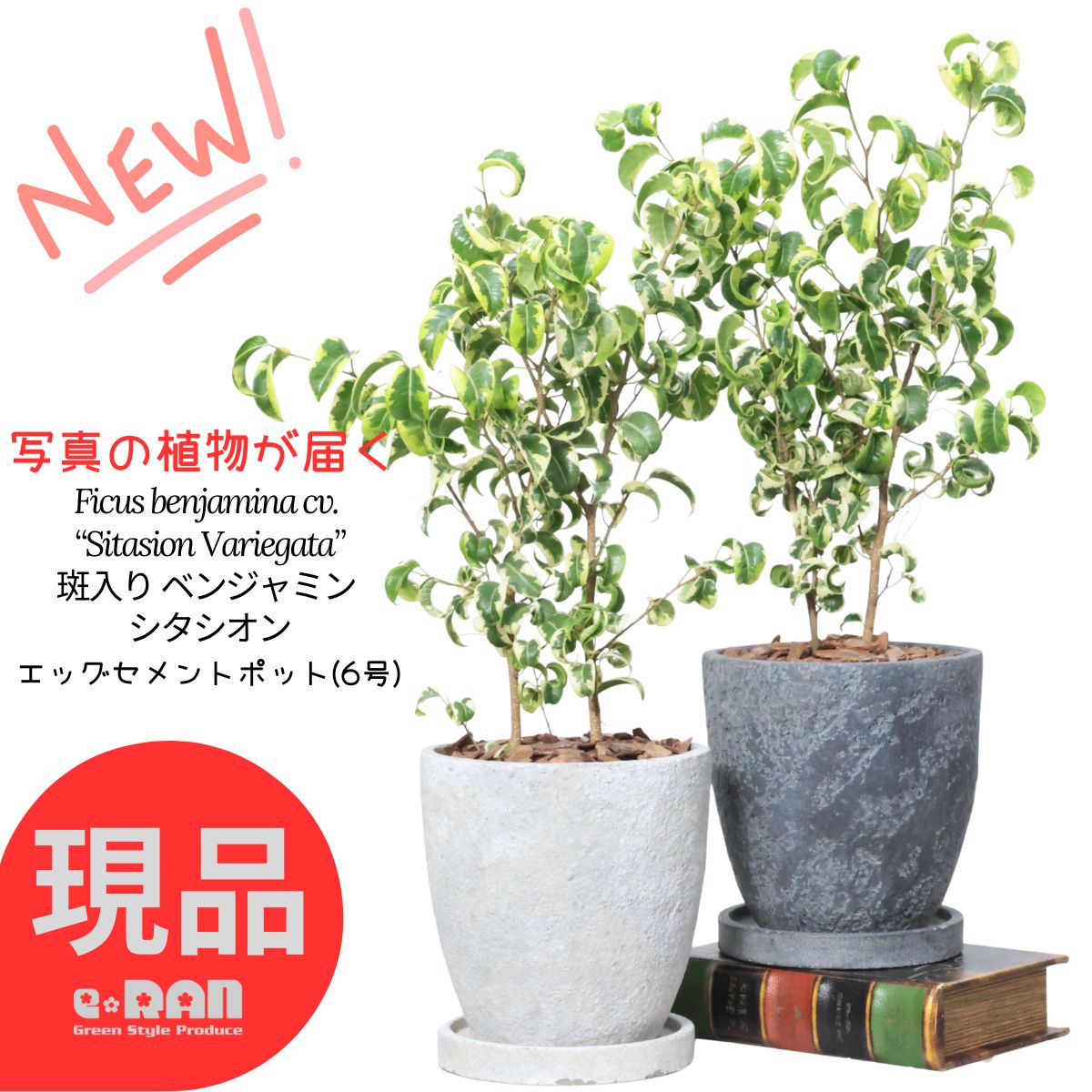 ※売り切れた場合、商品の更新を行う為 商品ページの写真は変わってしまいます。 購入後再度確認したい場合は画像の保存をお勧めいたします。 ■ 観葉植物名 【1点もの・送料無料】くるりとカールした葉が可愛く育てやすい 入手困難な斑入りフィカス ベンジャミン シタシオン(カール)セメントポット ■ 植物サイズ 【1】シタシオン斑入り 鉢を含む全体の高さ約51cm前後 撮影2025/11/29 sitasion-V-h51-20251129 【2】シタシオン斑入り 鉢を含む全体の高さ約52cm前後 撮影2025/11/29 sitasion-V-h52-20251129 ■ 植木鉢サイズ 【エッグセメントポット6号】 ・ 外寸直径約16cm ・ 高さ約17.5cm ・ 専用受皿付 ※セメント製品の特性上、大きめの気泡穴、型から取り外す際にできる角の削れがございます。 化粧具合の個体差および色ムラがございます。あらかじめご理解いただいてお買い求めください。 ■ 商品説明 ★ ベンジャミンの中でも生産量が少なく入手困難なシタシオン(カール)ですが、さらに斑入り個体で希少です。 ★ 学名:Ficus benjamina cv. “Sitasion Variegata”ベンジャミン・カール(シタシオン)バリエガータ ★ ベンジャミン・バロックとよく似て、葉がカールしていますが、シタシオンの方が葉も大きくカールも緩めです。 ★ 自然樹形のシタシオンは、生産量が少なく入手困難な樹形です。 ★ ベンジャミンはお部屋のインテリアに合わせやすく、育てやすいのが魅力です。 ★ 小さな葉っぱを茂らせるベンジャミンは、種類によって葉の形や色が違いバリエーションを楽しめる観葉植物です。 ★ 一般的なベンジャミンゴムの木より育てやすさと個性的な葉が人気です、日陰にも強いと高評のベンジャミンです。 ★ ベンジャミンとは、クワ科・フィカス属に分類される樹木です。 ★ 花言葉は「信頼」「融通のきく仲間」『永遠の愛』『友情』『結婚』 ★ ベンジャミンは風水的に人間関係を円滑にする効果があると言われています。 ■ サービス ★ 用土の表面には、植物に優しいお洒落な園芸用インテリアバークチップを敷いてあります。(乾きを抑えお洒落な化粧です。) ★ 出荷時、2種の緩効性肥料(水を与えた時ゆっくり溶ける肥料)をマルチングの下に乗せてありますので、お届け後、1.5ヶ月間は肥料を与えなくて大丈夫です! ★ 出荷時、葉の手入れ、病害虫予防処理等、完全処理して発送させて頂いております。 ★ 【e-RANオリジナル管理説明書・肥料小袋付き】 ★ 【立札、メッセージカード、リボン、無料!】 ※ご注文の際、備考欄に明記してお申し付けください。 ■ 主な用途 ギフト 贈答 贈り物 プレゼント 御祝 お祝い 会社設立祝い 開店祝い 開所祝い 開業祝い 移転祝い 新築祝い 引越し祝い 結婚祝い 自宅用 観賞用 贈呈用 室内用 退職祝い 御祝い 出産祝い 内祝い 誕生日 結婚記念日 ホワイトデー お返し バレンタインデー 母の日 父の日 敬老の日 風水 魔除け 開運癒し オフィス お部屋 玄関 トイレ リビング 寝室 デスク 庭 キッチン エントランス インドア ガーデニング インテリア グリーン 自分用 お取り寄せ ポイント消化 潤いを与えてくれるパートナー 装飾 ■ 注意事項 ※現品商品は売り切れた場合、更新を行う為商品ページの写真は変わってしまいます。購入後再度確認したい場合は画像の保存をお勧めいたします。 ※全体の高さは鉢底から観葉植物の葉先までの高さとなります。 ※当店の商品は「生き物(植物)」です。 そのため、成長過程により生じるキズや、高さ・樹形の変化を理由とした返品・返金はお受けできません。 ご理解・ご了承のうえでご購入をお願いいたします。 ※実店舗販売も行っております関係でタイミングによっては売り切れてしまう場合が有ります。 (ご注文を頂きましてもタイミングによっては売り切れの場合もございます。予めご了承下さいます様宜しくお願い申し上げます。) ※発送前に、薬剤の散布およびマルチングの下への化成肥料等の施肥を行っております。個人差はございますが、肥料のにおいが気になる場合がございます。その際は、お手数ではございますが、肥料を取り除いたうえで、屋外や浴室などで全体にシャワーをかけ、薬剤等を洗い流していただきますと、においが和らぎます。なお、そのままの状態でも、時間の経過とともに薬剤の効果とあわせてにおいは自然に薄れてまいります。 ※領収書など、その他、料金表示のあるものは希望が無い限り発行しておりません。ご希望の場合はご購入の際備考欄にてご記入ください。 ※生きている植物の為、写真と多少変わる場合がございます。予めご了承下さい。 ■ サイズからも選べます! ■ 販売実績 商品番号 h91-20230420・h82-20240126・h93-20240304 当店取り扱いの商品はこちらから検索できます。在庫が無い場合は【問い合わせ】よりご希望の植物名、サイズ(鉢サイズ)等をお知らせください。当店の取り扱い実績(五十音順):アカシア アガベ アグラオネマ アジサイ アデニウム アフリカンプリンス アポロゴム アマゾンオリーブ アム