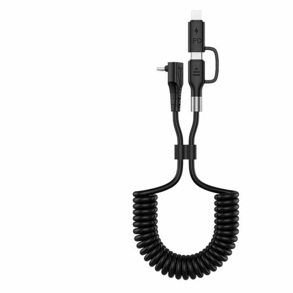 ダイハツ ハイゼットデッキバン 2in1 USB-A USB-C ライトニングケーブル カールコード MFi認証 Apple Carplay Android Auto iPhone 充電ケーブル PD 27W/60W 急速充電 高速データ転送 伸縮 高耐久 ienobenrikan