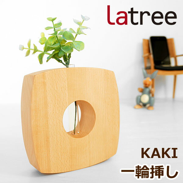 【★12/7まで!限定価格+クーポン!】一輪挿し 花器 ユラユラB ビーチ フラワーベース 木製 天然木 試験管ガラス 花瓶 インテリア おしゃれ シンプル HIDAKAGU/ラトレ(Latree) KAKI (PL1KAK-0080000-BEOL)【2450】