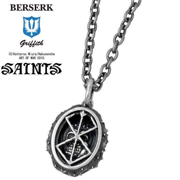 【ポイント5倍!ブラックフライデー!】 セインツxベルセルク BERSERK×SAINTS シルバー ネックレス アクセサリー 烙印と髑髏のペンダントトップ アクセサリー メンズ ドクロ BSS-P-08