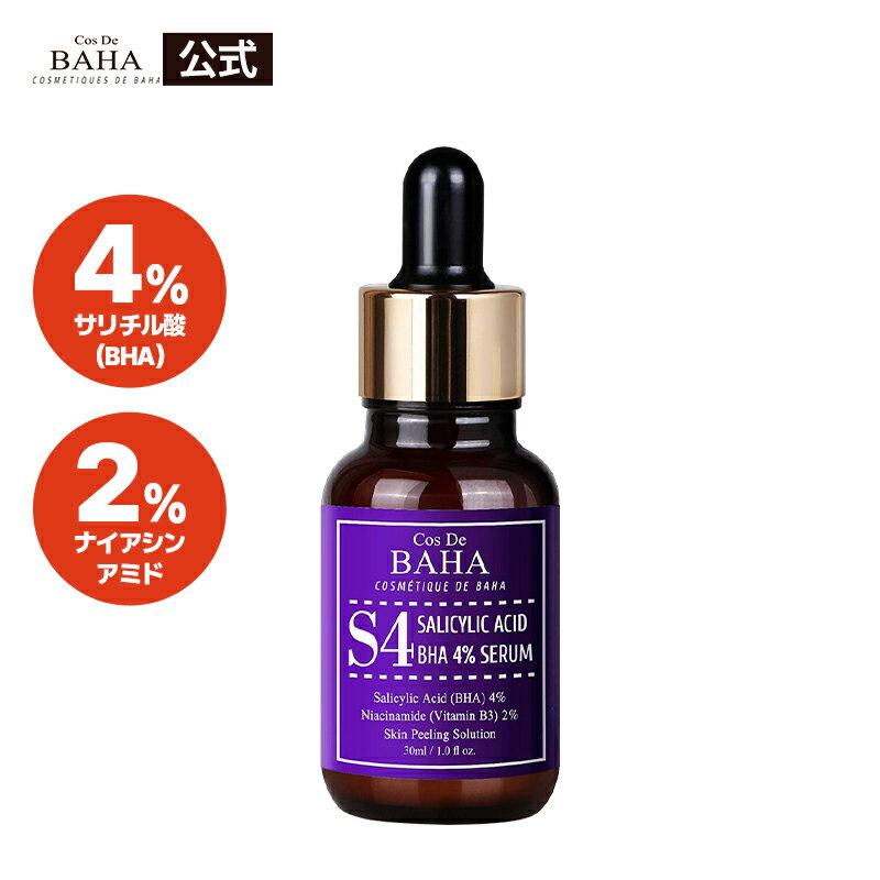色素沈着と黒ずみもOFF!素肌に自信をON【cosdebaha 公式】S4 サリチル酸 美容液 30ml セラム BHA しわ たるみ 弾力 にきび ニキビ跡 アンプル 高濃縮 毛穴 スキンケア 韓国コスメ ピーリング ナイアシンアミド 角質ケア