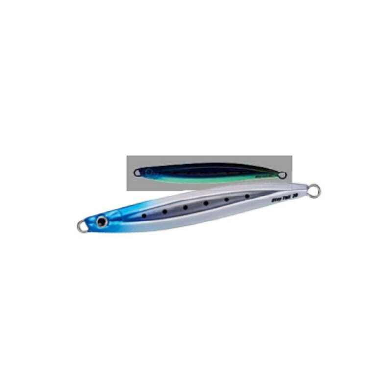 仕様表喰わせの間メタルジグの基本的な使い方は、大きく分けると「ただ巻き」、「ジャーキング」の2つですが、このうち「ジャーキング」に焦点を合わせ開発したのがこの「ステイフォール」です。「ジャーキング」の方法も様々ですが私が最も多用し、釣果を出しているのが「黒豹ジャーク」というもの。3回ジャーク(リールも3回巻く)しフォール、また3回ジャークしてフォール、を繰り返します。ジャークで魚に興味を持たせフォールで喰わせるという手法です。言葉では簡単そうですが、フォール動作に入る時に一瞬ロッドティップを下げ意図的にラインスラッグを出しています。そうすることでメタルジグが持っている本来の動きを最大限活かし、バイトに持ち込むことができるのです。そして度重なる研究の結果、ラインスラッグを出す動作をしなくても、水中でステイし「喰わせの間」を演出することができるメタルジグが完成しました!一般的なカタクチのスリムなシルエットで「喰わせの間」をつくることは水抜けが早く不向きでした。しかし、このステイフォールではジグの側面に窪みを設け水を?ませることで、水中で一瞬ステイさせることを可能にしました。水中にただステイし、フォールしている状態ではボディーが動かずフラッシングができないのでアピール力に欠けます。従って、窪みのエッジ部分を片側だけなだらかにすることにより水が抜けるきっかけを作りました。これにより、シミーフォールしながらフラッシングを行い木の葉状にスライドしていきます。重心はセンターより、ややリアバランスにすることで飛距離も確保しストレス無くキャストができます。リア側に重心が寄っているとフォール時に水平姿勢ではなくなるのでは?と思われるかもしれませんが、これも窪み部全体で水を受けることで水平フォールを可能にしています。「喰わせの間」を最大限に演出できる「メタルエフェクト ステイフォール」、その能力を体感してください。Jackson Metal Effect Stay Fallジャクソン メタルエフェクト ステイフォール●重 量:40g●サイズ:83mm●フック:F#14 R#4●カラー:BHG ブルーヘッドグローベリー(グロー仕様)詳細はこちら