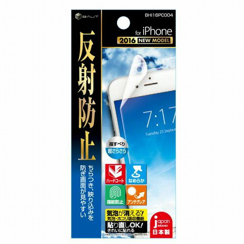 iPhone8/7/6s/6用反射防止フィルム 型式:BHI16PC004 JAN:4562451766219 仕様:PET素材、厚さ0.28mm ヘラ、ホコリ除去シール、クリーニングクロス付属 サイズ:W55×H120×D0.28mm 重量:25g 対応機種:iPhone8,iPhone7,iPhone6s,iPhone6 アンチグレア,ハードコート,指紋防止,フッ素コート,抗菌率99%,自己吸着