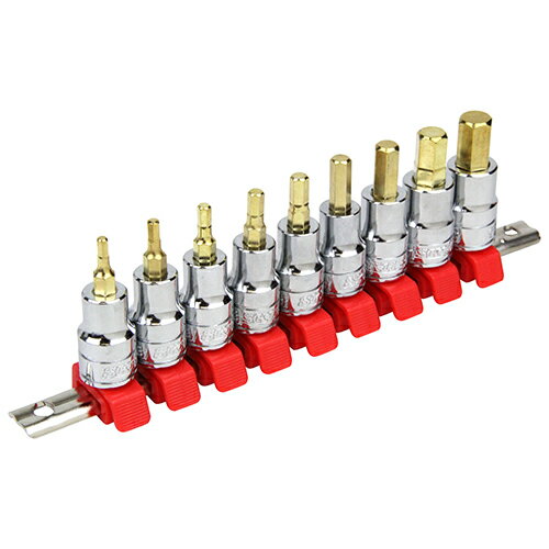 ■商品のご紹介六角穴付きボルトのインチサイズに対応しています。型番SHS309BHI商品番号067200689仕様●セット内容:1/8・9/64・5/32・3/16・7/32・1/4・5/16・3/8・7/16インチ。●差込角:9.5mm。材質●ソケット:クロームバナジウム鋼・ビット:S2。●ソケットホルダー・クリップ:ポリアセタール。●レール:鉄。用途六角穴付ボルト・六角穴付き止めネジの締め付け、緩め作業。機能ワンタッチ操作で、簡単にソケットを取外せ、確実にソケットを取付けられます。注意事項ボルト・ナットのサイズに合ったものを使用してください。ソケットはボルト・ナットに対して斜め掛けや浅掛けをしないよう、奥まで完全に差し込んで使用してください。角ドライブは根元まで完全に差し込んでください。インパクトレンチ等の動力工具では使用しないでください。ハンドルにパイプを継ぎ足したり、ハンマーなどで叩いたりして使用しないでください。割れ・欠け・摩耗・変形等の異常が認められた場合は、使用しないでください。本来の目的、用途以外での使用はしないでください。